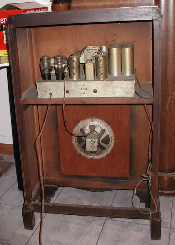 radio which needs a cabinet. The radio to the right of it is my grandfather's